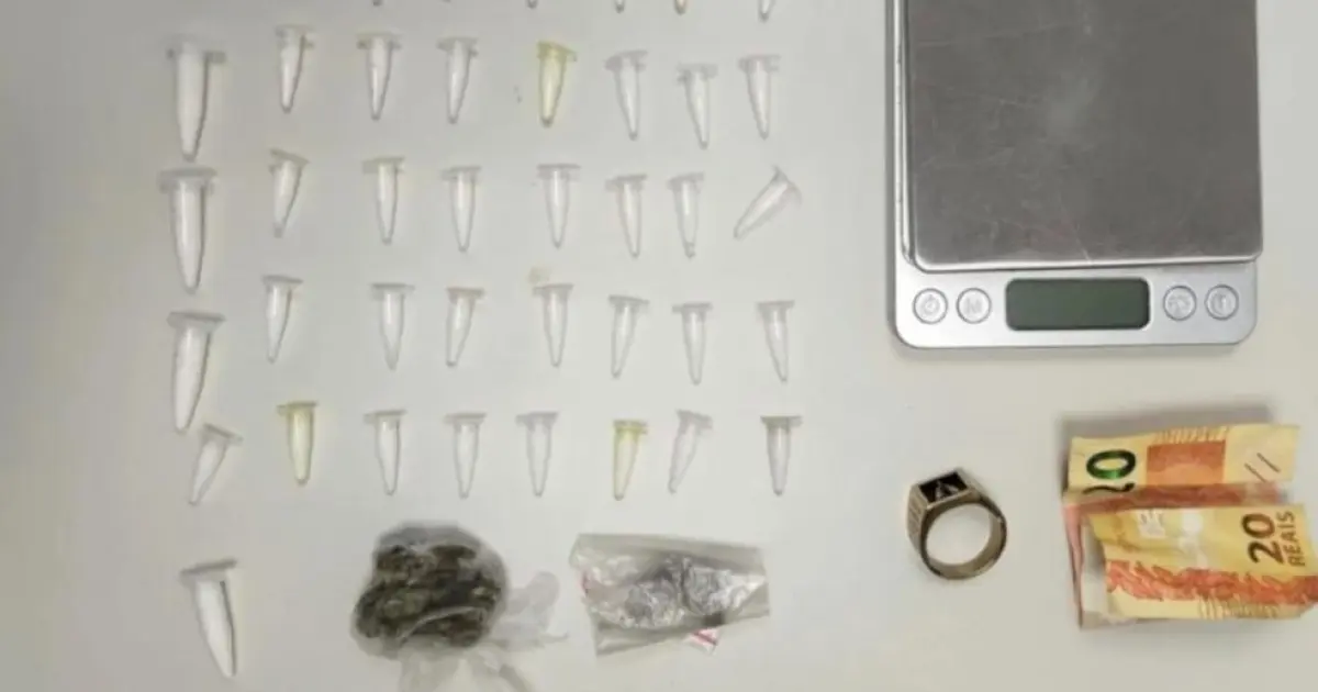 Durante o patrulhamento, os policiais avistaram suspeitos que, ao perceberem a aproximação da viatura, tentaram fugir. Um dos homens foi alcançado pelos militares, que encontraram em sua posse 41 pinos de cocaína, duas buchas de maconha e uma balança de precisão, indicando o tráfico de entorpecentes.