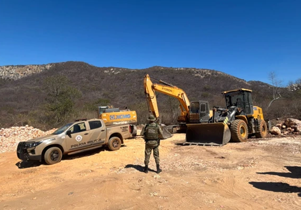 Na operação, policiais militares da Cippa Lençóis apreenderam explosivos de uso restrito, máquinas e mais de 60 toneladas de quartzo — mineral cristalino de sílica, bastante utilizado em joias, artesanato e também em tecnologia, como na fabricação de relógios e fibra óptica.